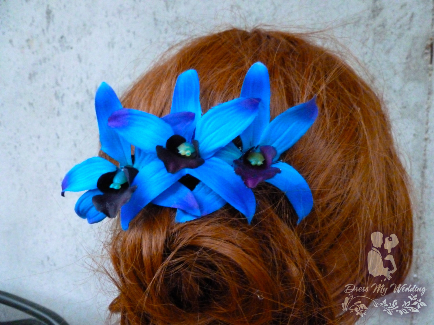 This is a listing for 1 hair comb, made with airbrushed purple blue orchids.