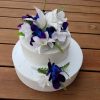 Lily and orchid cake topper measures 7″ across and it is made with an artificial cassablanca lily, white hydrangeas, white and galaxy orchids and greenery.