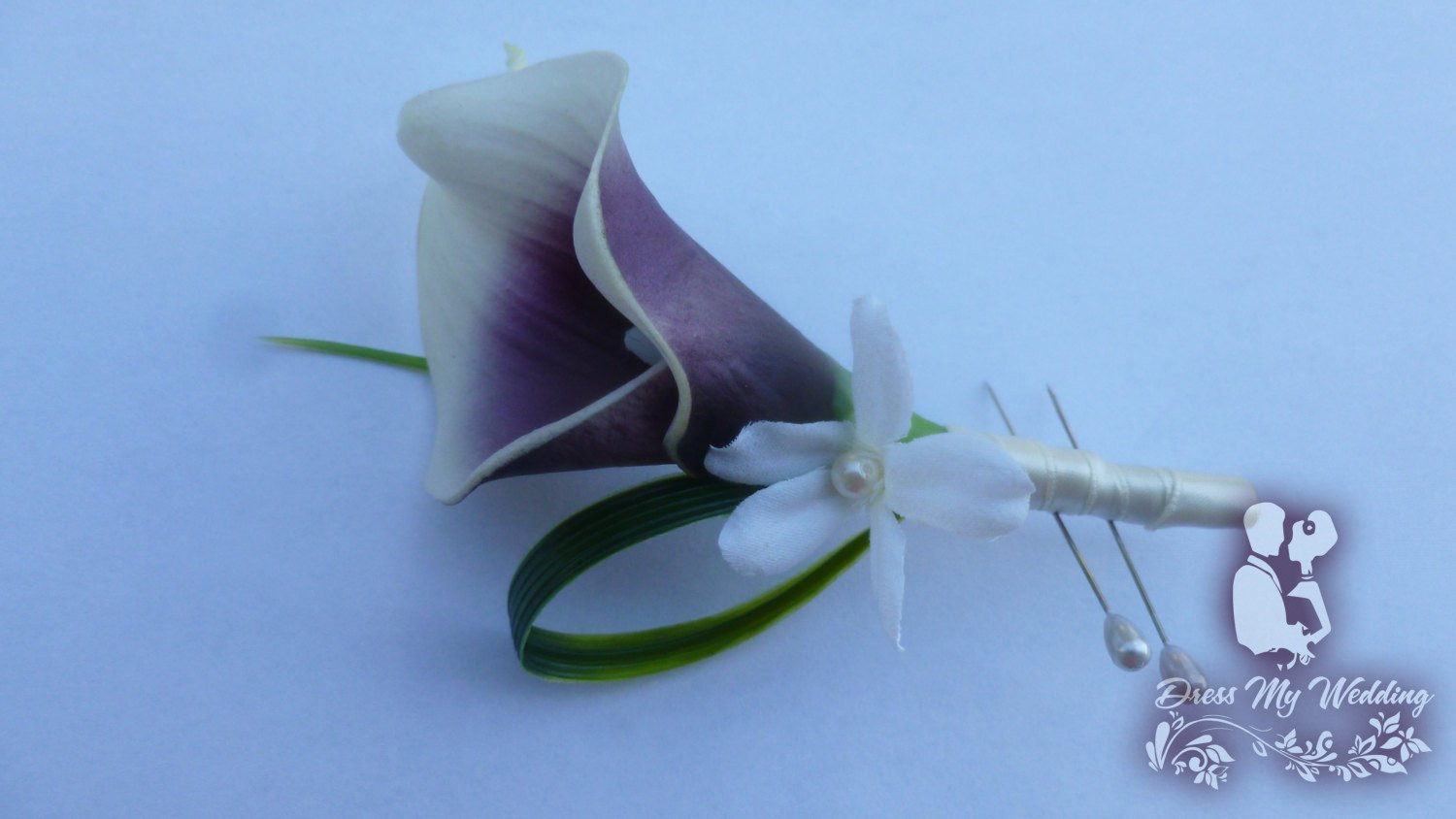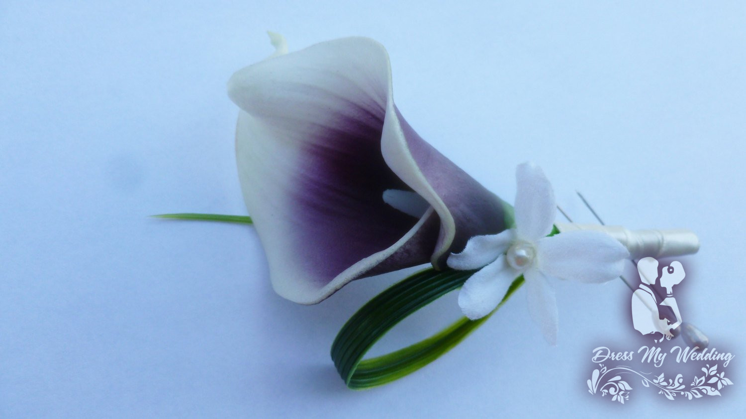 This is a listing for 1 Picasso calla boutonnière made with artificial real touch flowers.